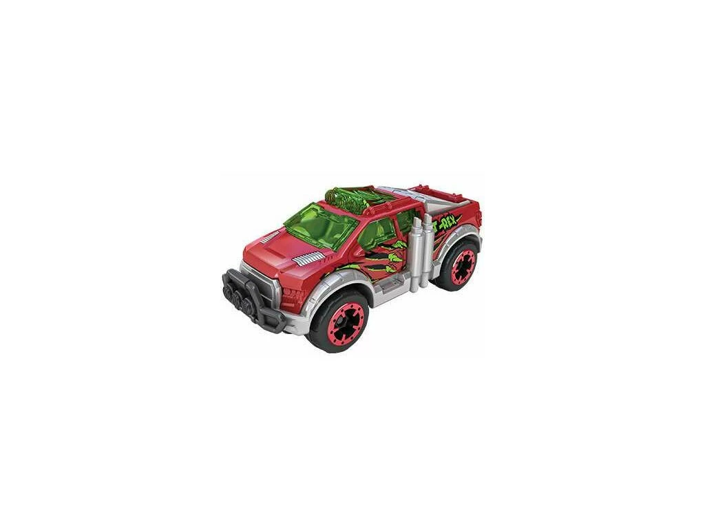 Tumba al poderoso T-Rex con un salto de infarto, solo has de colocar al vehículo Wild Thing en el lanzador y el vehículo pasará a toda velocidad por los dos loopings y se alzará por la rampa hasta entrar en la boca del T-Rex y tumbarlo. ¡Añade el resto de tus vehículos Metal Machines y multiplica la diversión! ¡Emoción, retos y adrenalina asegurada!