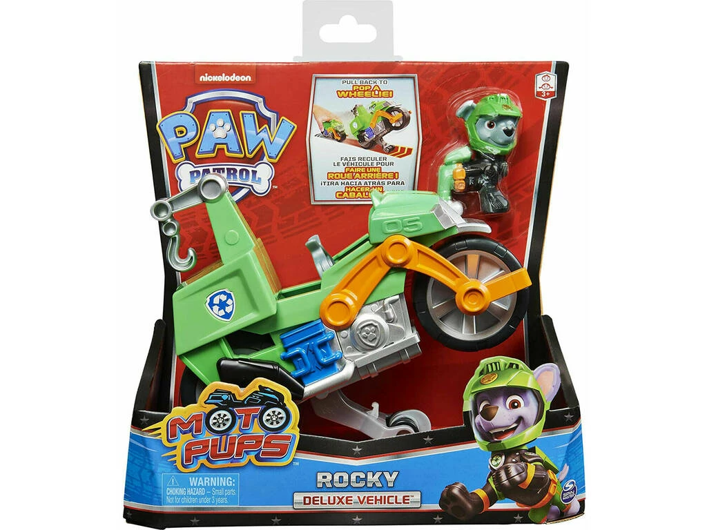 ¡Hora de pasar a la acción sobre ruedas! ¡Junto al nuevo y genial Patrulla Canina Moto Pups Rocky Deluxe Vehicle de Spin Master!