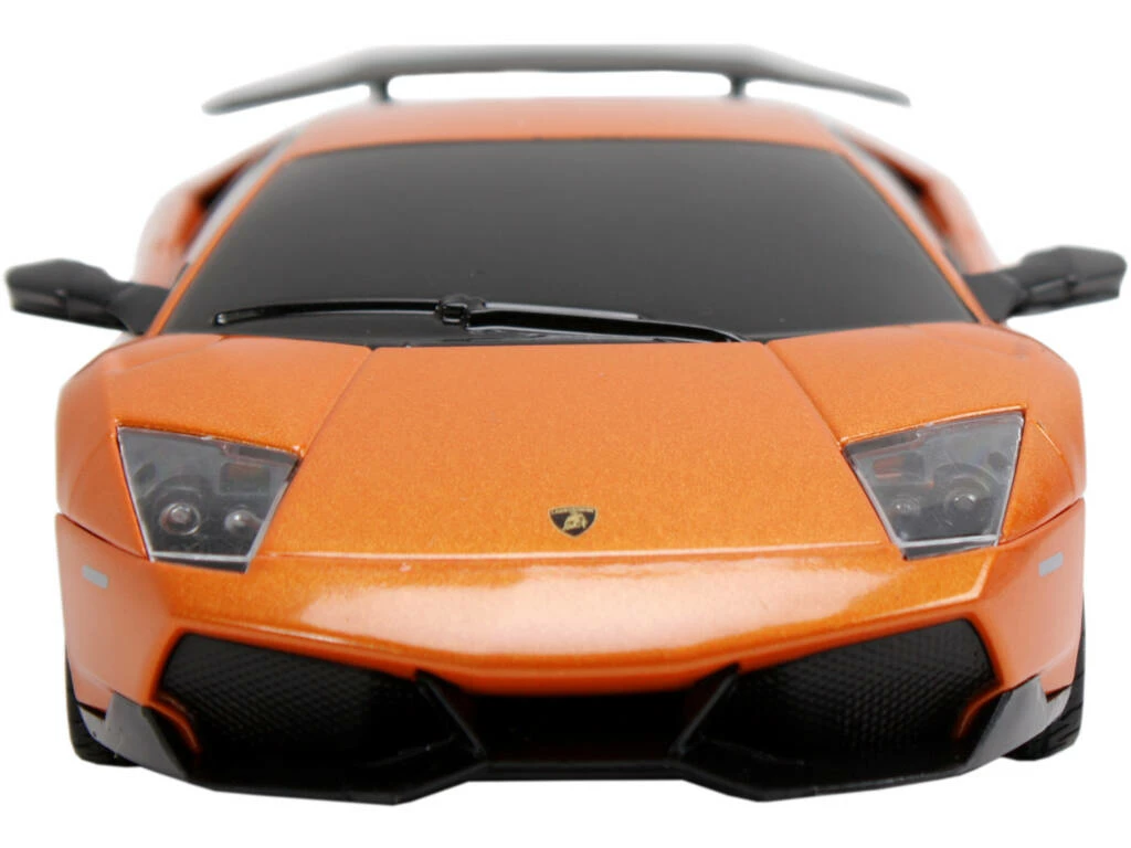 Incluye: 1 vehículo radio control Lamborghini Murcielago 670-4 SV de color naranja y negro y 1 control remoto para el vehículo.