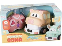 El mando radio control, es de plástico amarillo con botones azules y antena flexible para que sea fácil de manejar por los pequeños, y no pierda conexión con el vehículo.